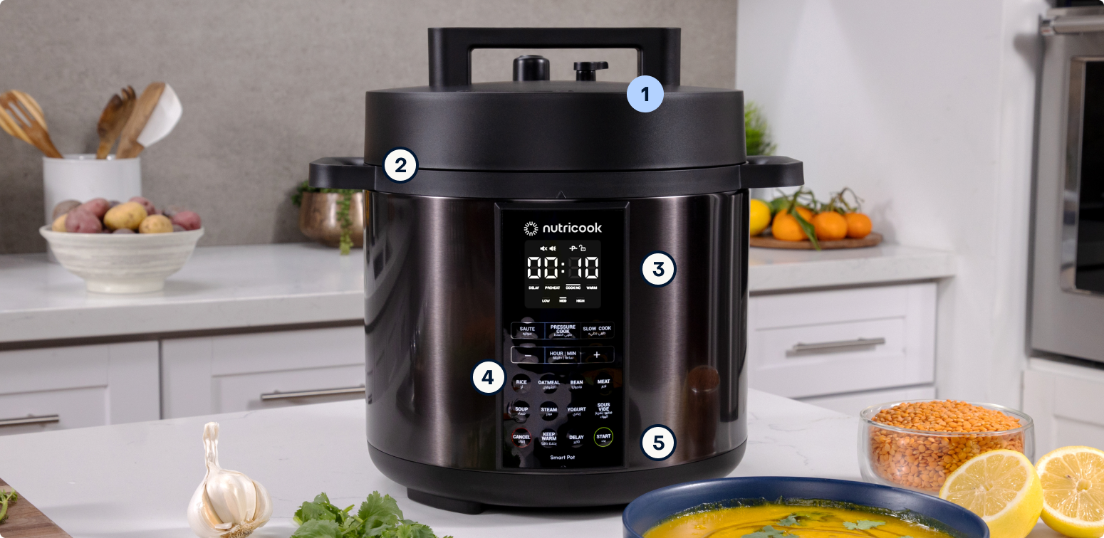 Our smart lid automatically seals the pressure release and the pressure release button safely releases steam with a single push so you don't risk touching hot steam at the end of the cooking cycle.