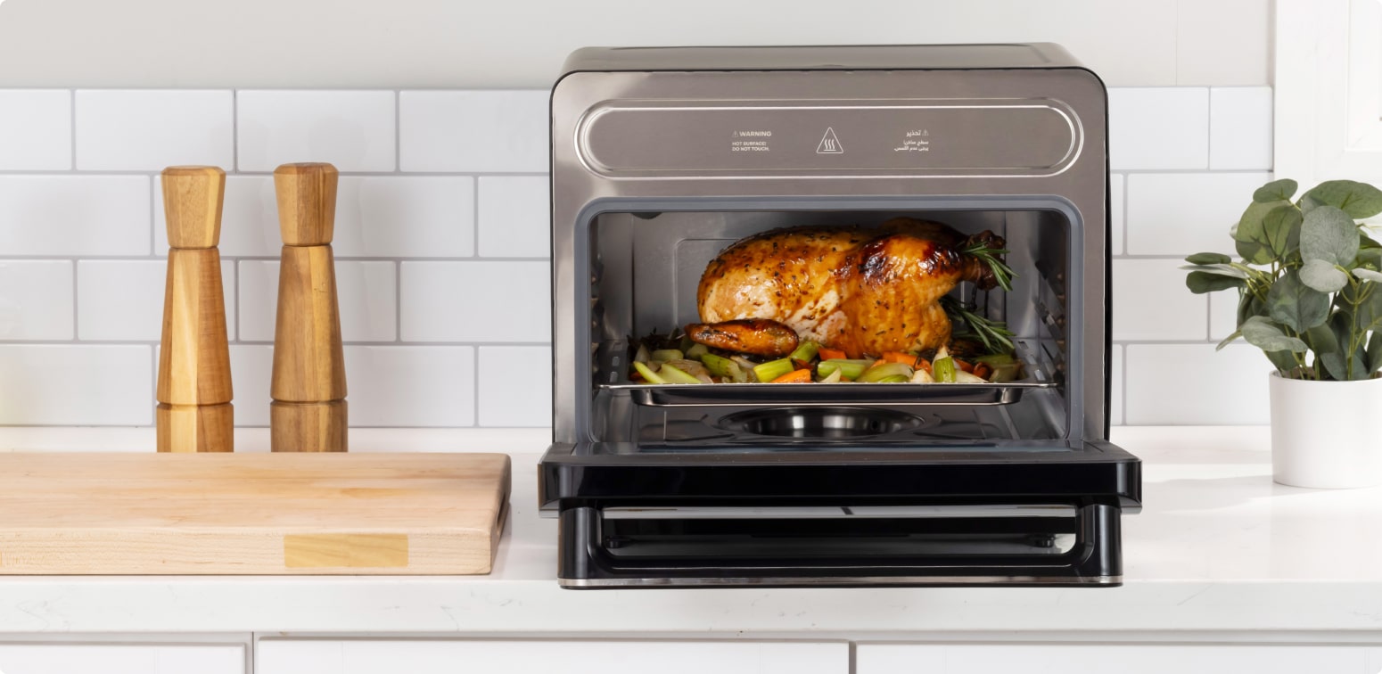 Unleash culinary versatility and choose from Air Fry, Bake, Roast, Broil, Pizza, Reheat, Dehydrate, Steam, Sterilize, Steam Bake, and Steam Roast.