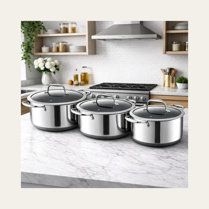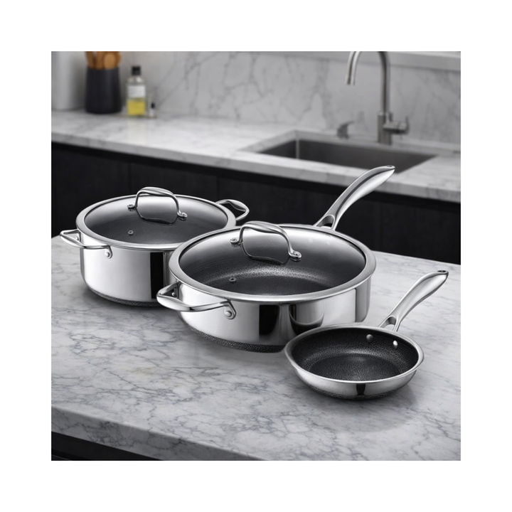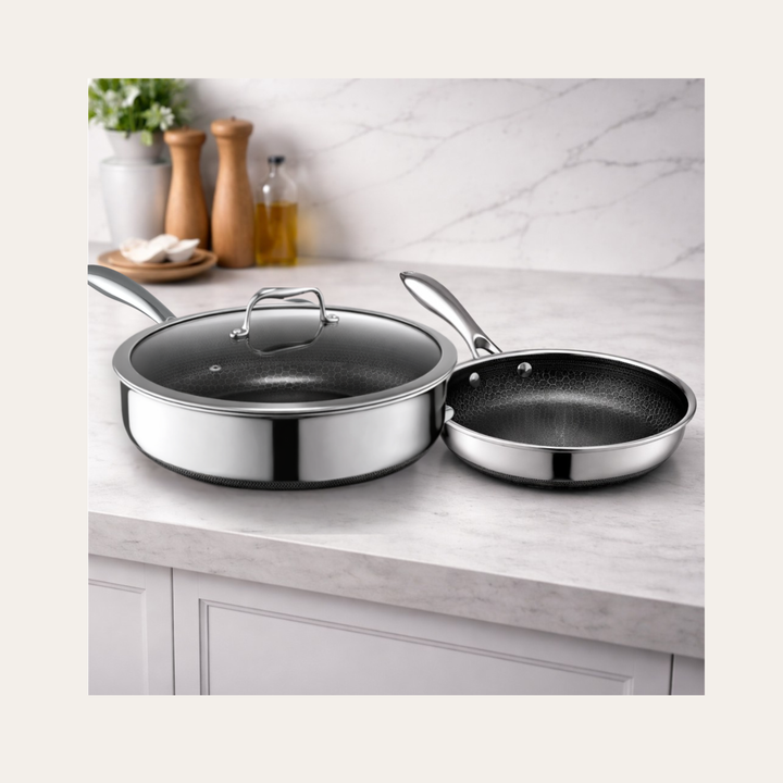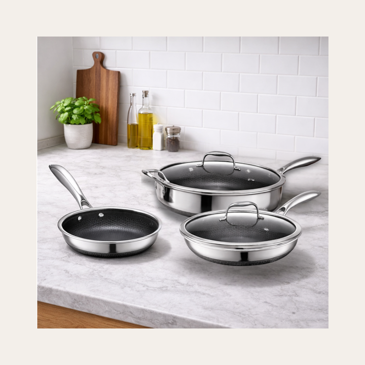 Eterna 3pc Pan Set – Frypan + Deep Pan with Lid