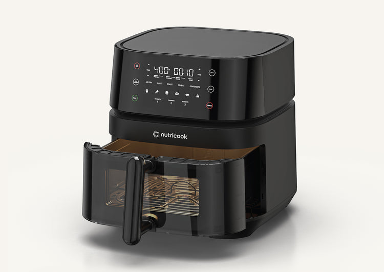 The non-stick air fryer basket and cooking tray are dishwasher-safe for easy cleaning.