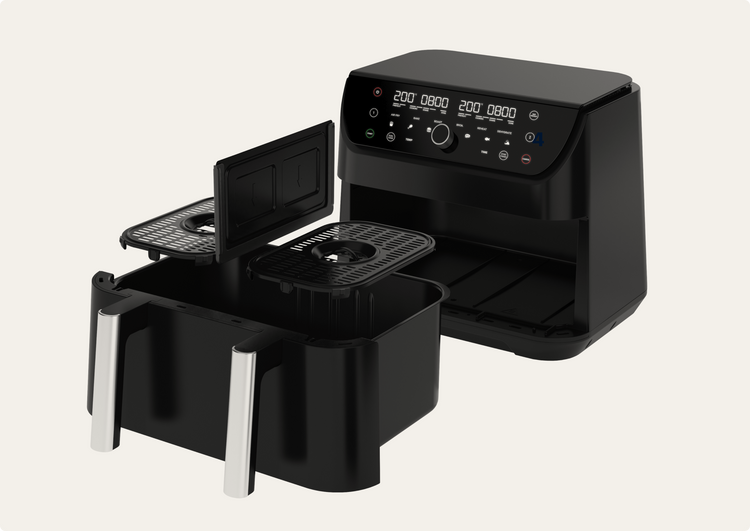 2 separate zones can be controlled independently or synced for simultaneous cooking.