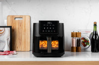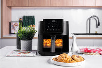 Large basket capacity fits 1.4kg of fries and can cook for up to 6 people.