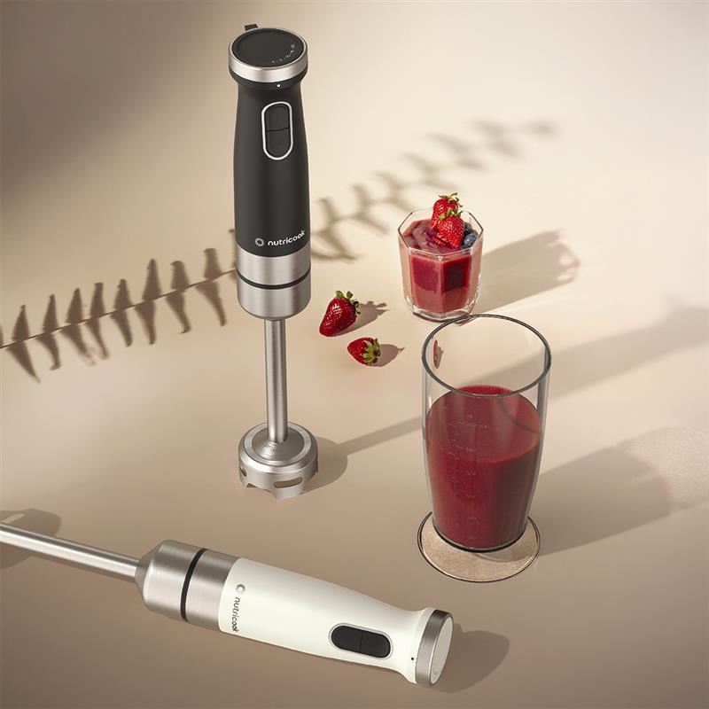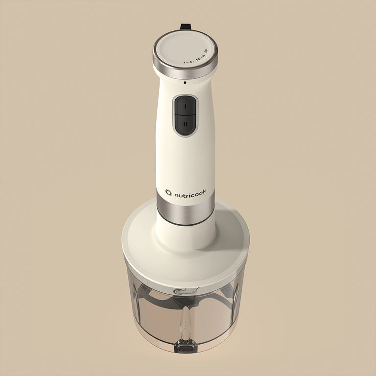 The Nutricook HB150ME Hand Blender features a powerful 1200W motor, 20 speeds with Turbo, and a stainless steel shaft for quick, precise, and easy blending every time.