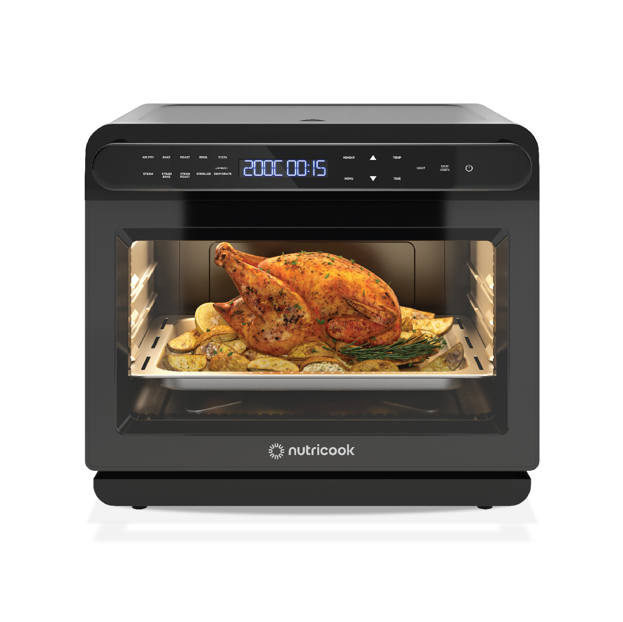 Unleash culinary versatility and choose from Air Fry, Bake, Roast, Broil, Pizza, Reheat, Dehydrate, Steam, Sterilize, Steam Bake, and Steam Roast.